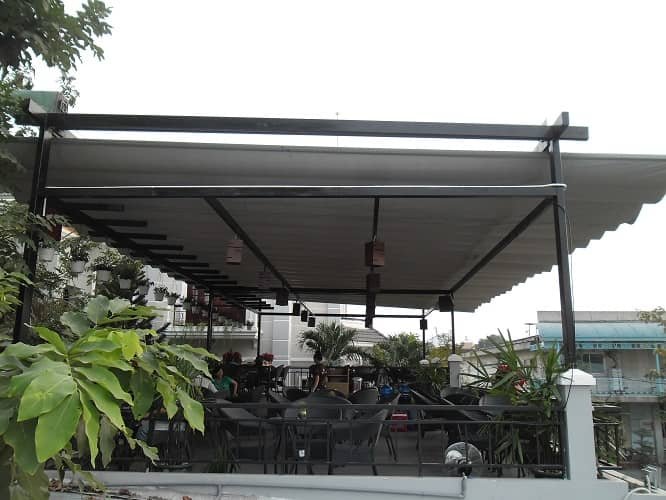 Hiện tại, ngoài các loại vải bạt thông thường như bạt mái hiên Hòa Phát, bạt mái xếp lớp Hòa Phát , bạt che tự cuốn. nhiều quán cà phê còn dùng mành che với màu sắc đẹp mắt, đồng bộ rất ấn tượng.